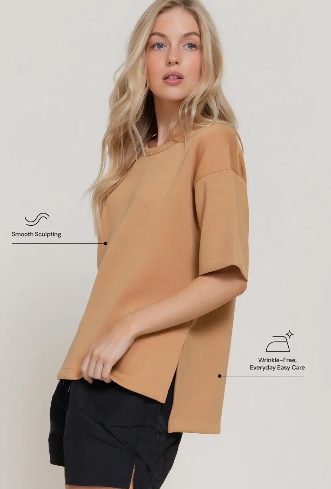 Gemaakt uit een soepelvallende modal stof die zacht aanvoelt op de huid en mooi meebeweegt met je lichaam. Dankzij de kreukvrije kwaliteit blijft het shirt de hele dag netjes.